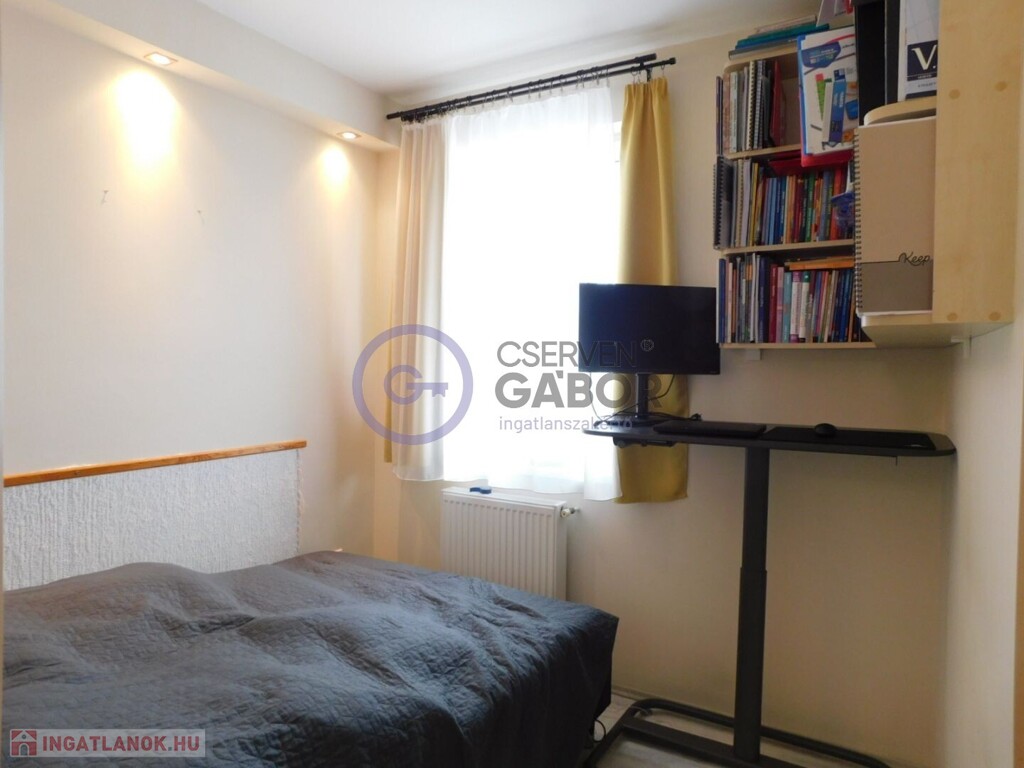 Belvárosban, a Vörösmarty utcán, 2009-ben épült, kilenclakásos, négyemeletes társasházban, a harmadik emeleten eladó egy 31 m2-es, 1 háló+nappalis, étkezőkonyhás, gázcirkó fűtésű lakás, a hozzá tartozó, kizárólagos használatú 2 m2-es tárolóval, valamint egy, a garázsszinten lévő, 15 m2-es teremgarázzsal.