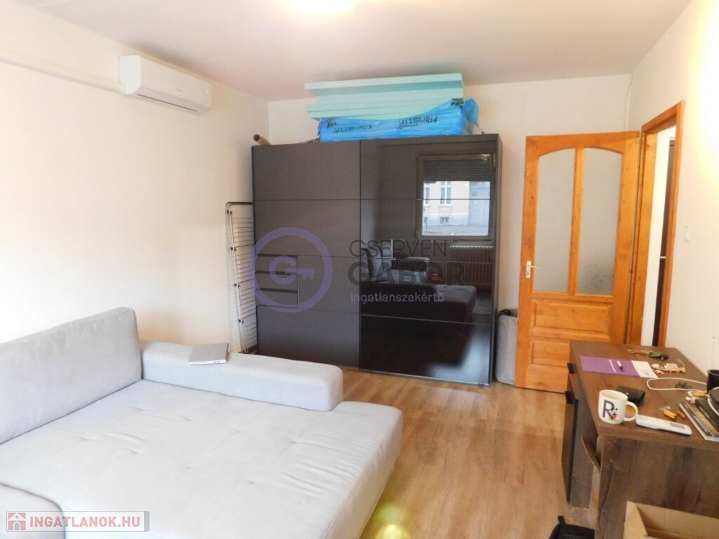 Aminek egy 35 m2-es lakóterületben lennie kell, mindennel rendelkezik a lakás. Van egy kimondottan tágas nagyszobája, egy külön bejáratú félszobája, egy konyhácskája, valamint egy fürdőszobája, ami magába foglalja a WC-t is.